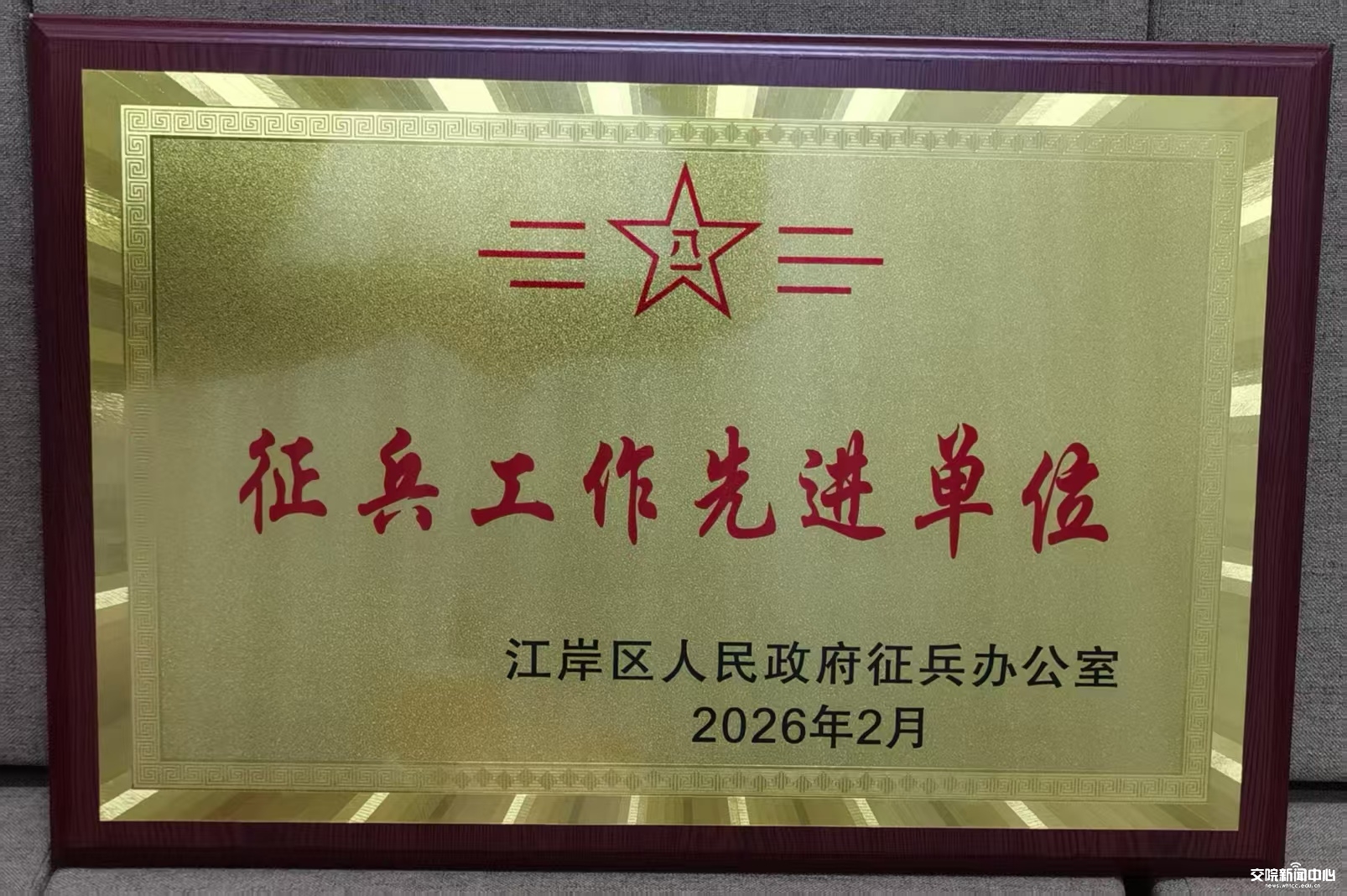 在3月12日召开的2026年江岸区征兵工作会议暨春季预定兵会议上,我校再次被江岸区政府征兵办公室授予江岸区2025年度征兵工作先进单位。